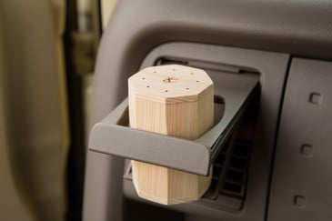 車内に設置することで、車の中のうっ滞した空気を清々する車用迦具土(カグツチ)をベースとして開発された、「はこび」。